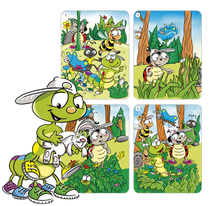 Jednym z największych atutów Join Bugs Team Starter są świetnie zaprojektowane, wartościowe historyjki. Każda z nich opiera się na motywie współpracy, a ich zadaniem jest nie tylko utrwalanie słownictwa i fraz komunikacyjnych, ale przede wszystkim przyciąganie uwagi dzieci ciekawą treścią. Opowiadania mają prosty, zrozumiały kontekst, dzięki czemu dzieci intuicyjnie rozumieją ich sens bez dodatkowych wyjaśnień. Powtarzające się frazy oraz ilustracje na kartach historyjkowych pozwalają aktywnie włączać dzieci w opowiadanie, np. poprzez robienie pauz w momentach, gdy fraza powraca.